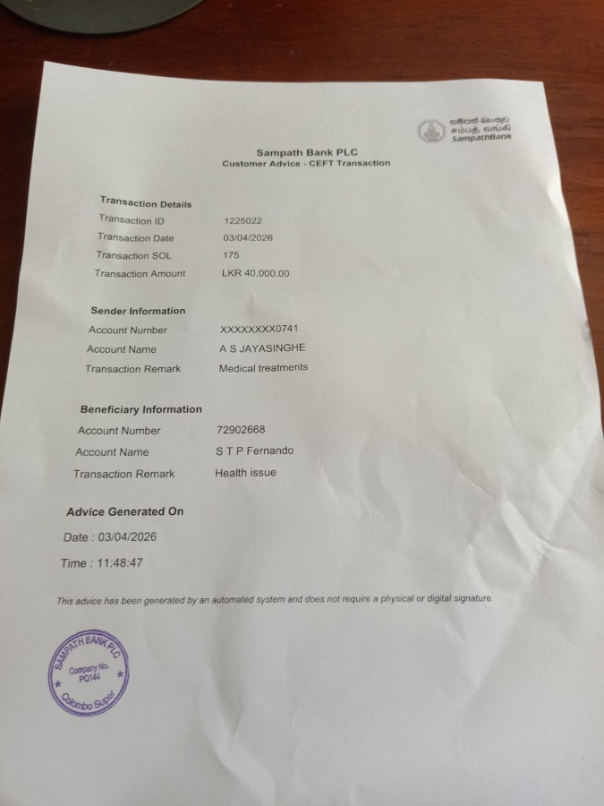 A financial contribution was made to support her Medical Treatment Project chairperson Lion Anu Jayasinghe