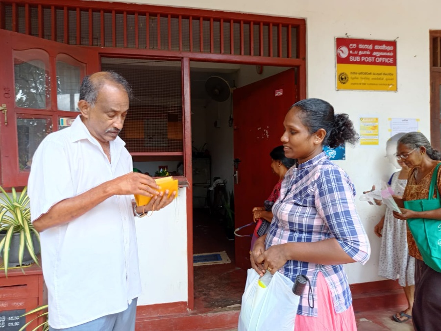 We donated Rs. 750.00 +refreshments valied to Rs. 250.00 to each person who came to collect government grants from sub Post Office Pelenwatta, Pannipitiya