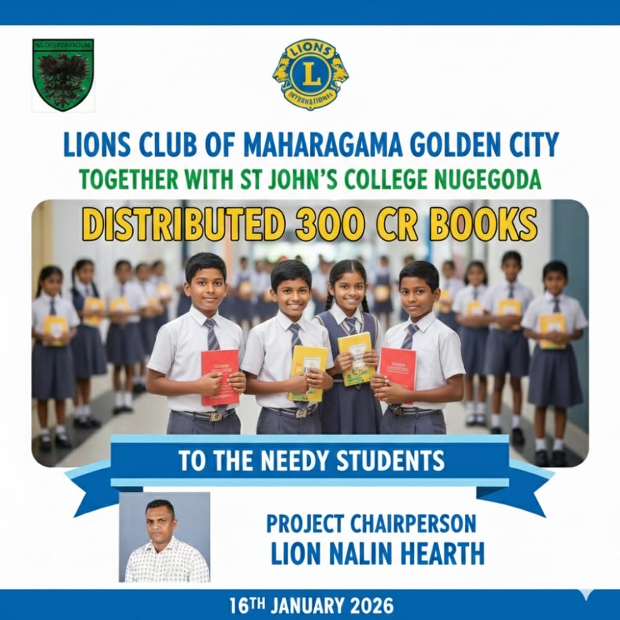 Lions club of Maharagama Golden city organized Distribution of customized 300 CR Books to the needy students of St' Johns college nugegoda. this project is parallel to the 100,000 books project. As a ...