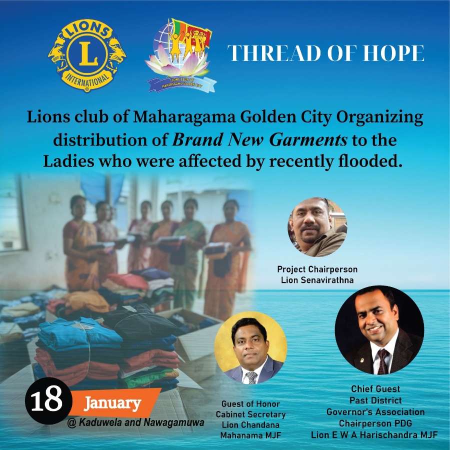 Lions club of maharagama golden city organized distribution of BRAND-NEW GARMENTS to the ladies who were affected by recently flooded, this will give a new hope to the beneficiaries. this is a wonderf...
