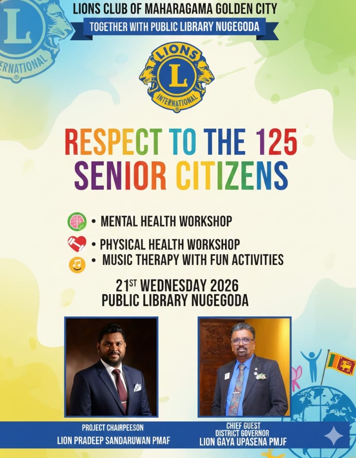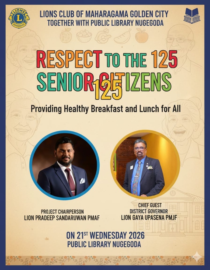 Lions club of Maharagama golden city together Public library nugegoda organized "RESPECT" Program on 21st January 2026. we provided LUNCH FOR ALL the participants of the day. nearly 150 benefited by t...
