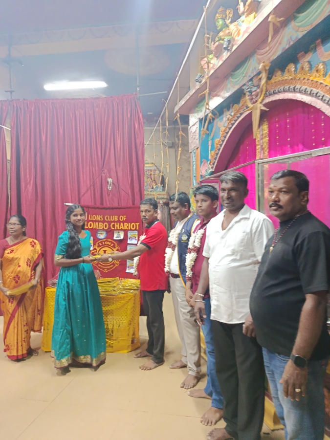 Donated Sunday School uniforms to Dematagoda Hindu kovil project chairperson Lion P.Sivalingam Prticipated Club President Lion S.H.Vijaya Kumar