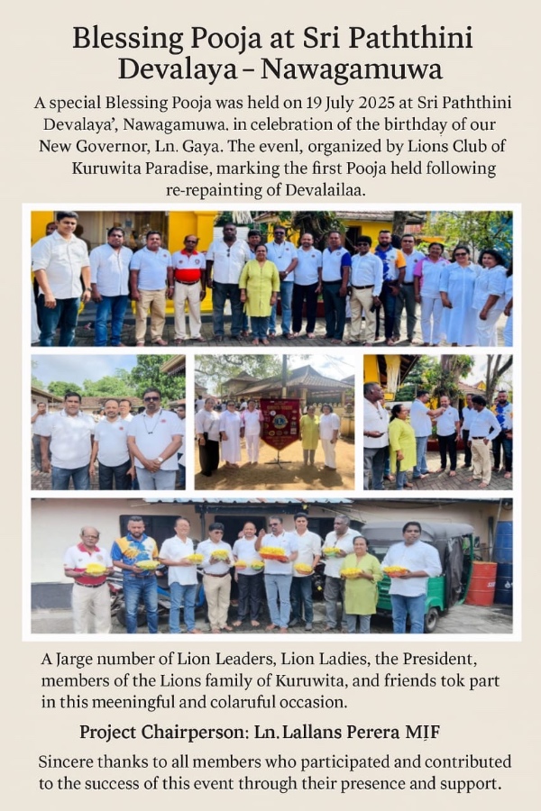Blessing Pooja held at "Sri Paththini Devalaya", Nawagamuwa, Kaduwela on New Gov. Ln Gaya's birthday & for the blessing of New Governors, new Cabinet, Lions, Lion ladies of the district 306 D7. 1st...
