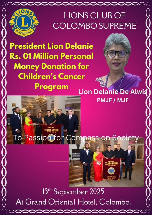 Rs. 1,000,000/- Personnel Money Donation Event has been Done at Grand Oriental Hotel Specially for Childhood Cancer by President Lion Delanie