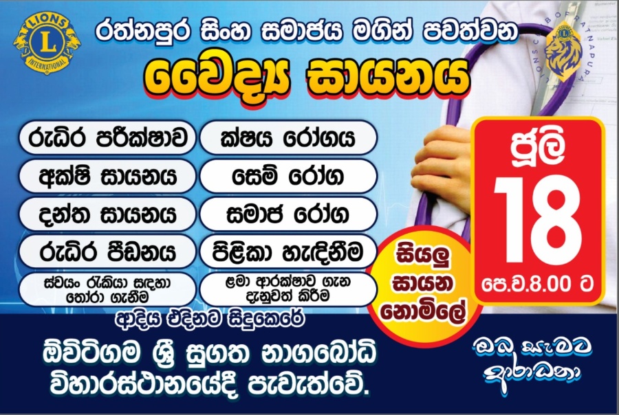 Multi-Service Project – Lions Club of Ratnapura Date: 18th July 2025 Venue: Ovitigama Sri Sugatha Nagabodi Viharaya Activities: 1 Blood Test – Basic health screening and diagnostics. 2.Tuberculosi...