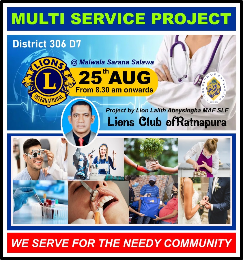 Multi-Service Project Report Date: 25 August 2025 Venue: Malwala Sarana Shalawa Organized by: Ratnapura Lions Club Leadership: Past District Governor Lion Bennet Gamalath Participation: District 306D7...