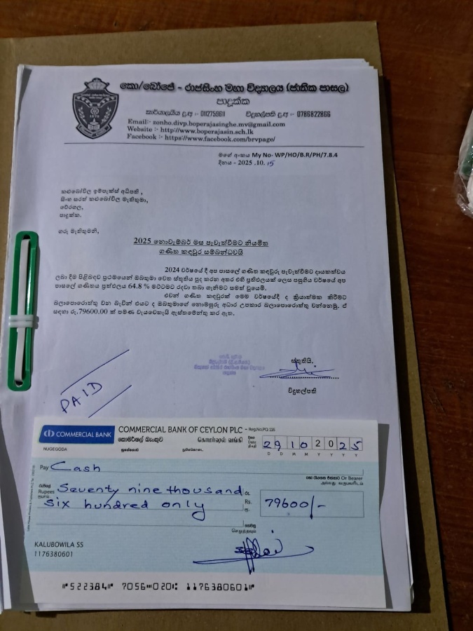 Donated Rs.79600/- for the Maths camp of Bope Rajasinghe Maha Vidyalaya.