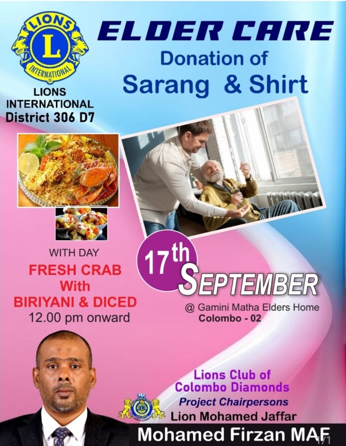 Lions Club of Colombo Diamonds organized a charitable event by donating shirts and lungis to the elders’ home, spreading warmth, care, and kindness among the senior residents.”