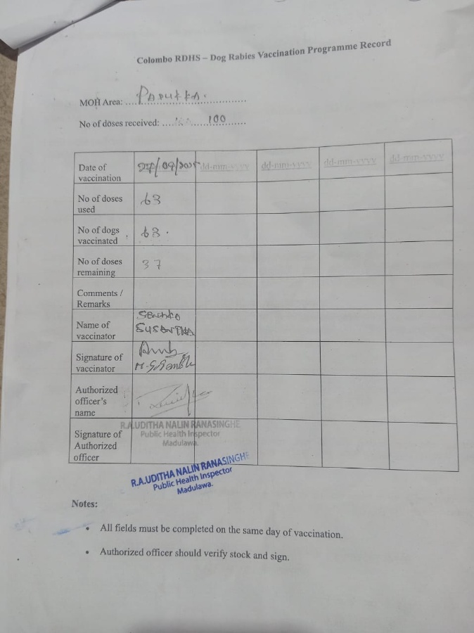 Dogs were vaccinated for rabies.Sixty three dogs were vaccinated in this project.This was done together with MOH office Padukka.