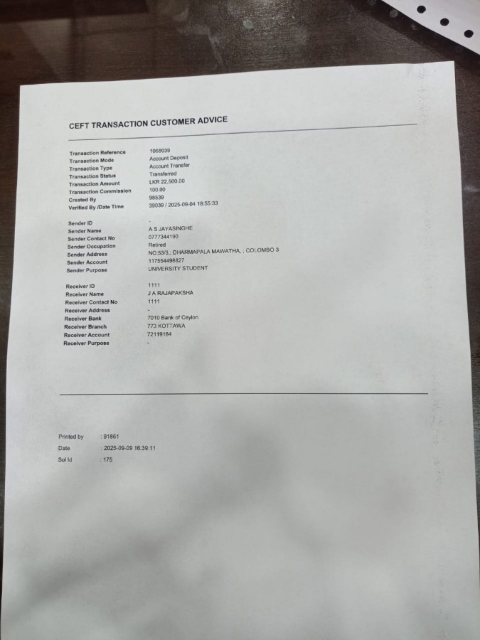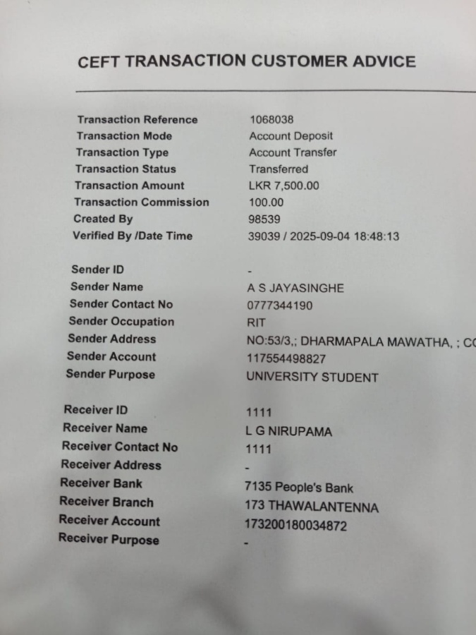 We donated Rs 750.00 each and refreshments valied to rs. 250.00 to each person who came to collect government grants from sub Post Office Pelenwatta, Pannipitiya
