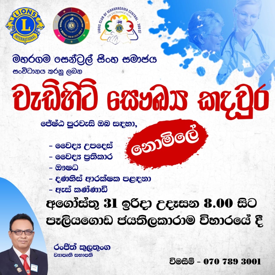 With the generous support of Lion Lakshika Gunathilaka of our Lions Club, Mr. Chathura Sankalpa, who is suffering from kidney disease, was referred to the Lions Golden Jubilee Hospital in Kadawatha an...