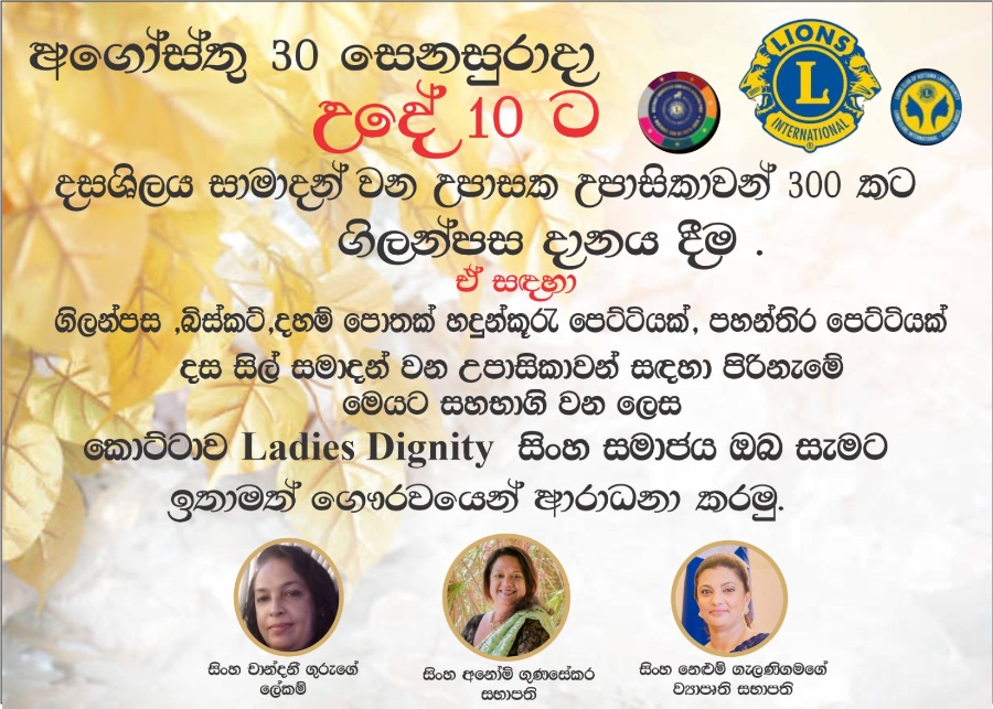 Alms were offered to three hundred people who observed cell at the kalutara temple.In addition, a book containing Buddhist verses and offering items were also presented to the group who had observed s...