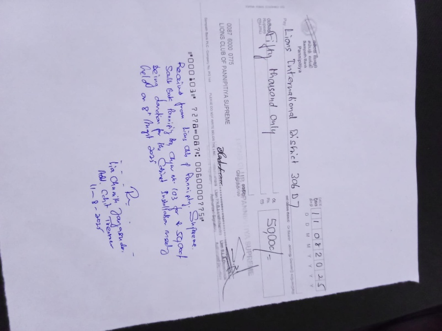 On behalf 9f the club lion Samika Asithanja has donated Rs. 50,000.00 and club has donated Rs. 50,000.00 for the cabinet installation ceremony
