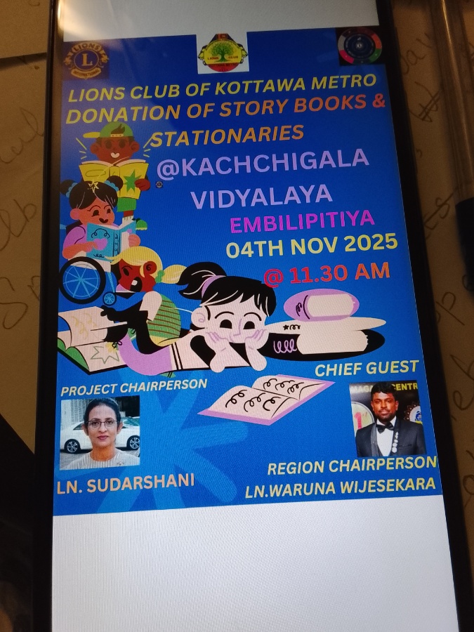 Lions club of kottawa metro donated story books and stationaries to the kachchigala vidyalaya embilipitiya. We donated 600 childrens story books, 25 packs of stationaries, environment equipments and 2...