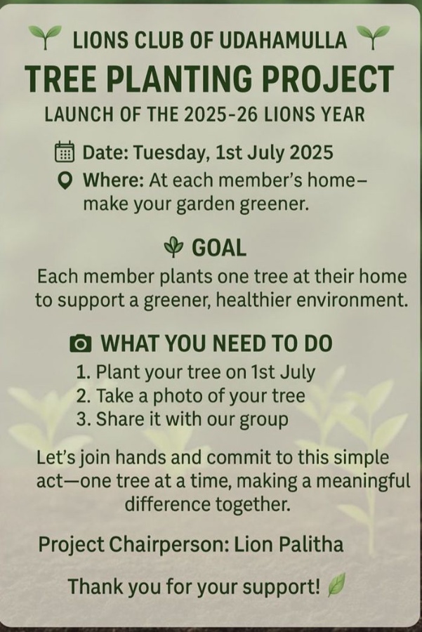 As part of the Lionistic Environmental Project organized by the Colombo Chariot Lions Club for the year 2025/26, a tree planting initiative was carried out with the aim of creating a greener and more ...