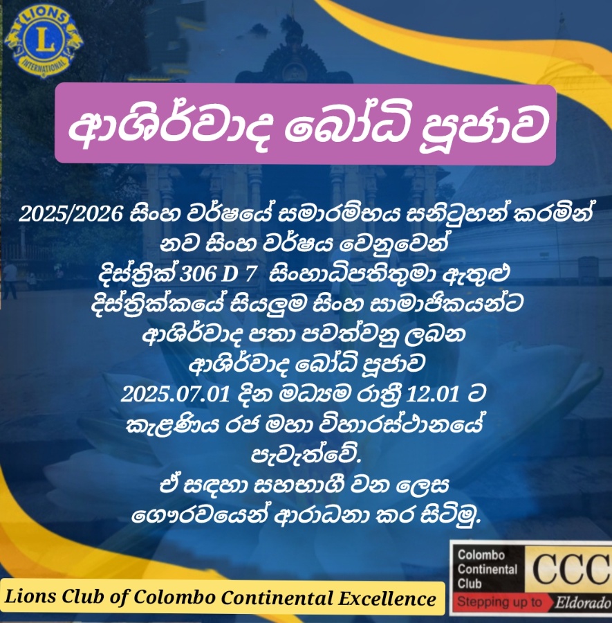 This spiritual project marked the official beginning of the new Lionistic Year at 00:01 AM on July 1, 2025, with an Ashirwada Bodhi Pooja held at Kelaniya Raja Maha Viharaya. The ceremony was conducte...