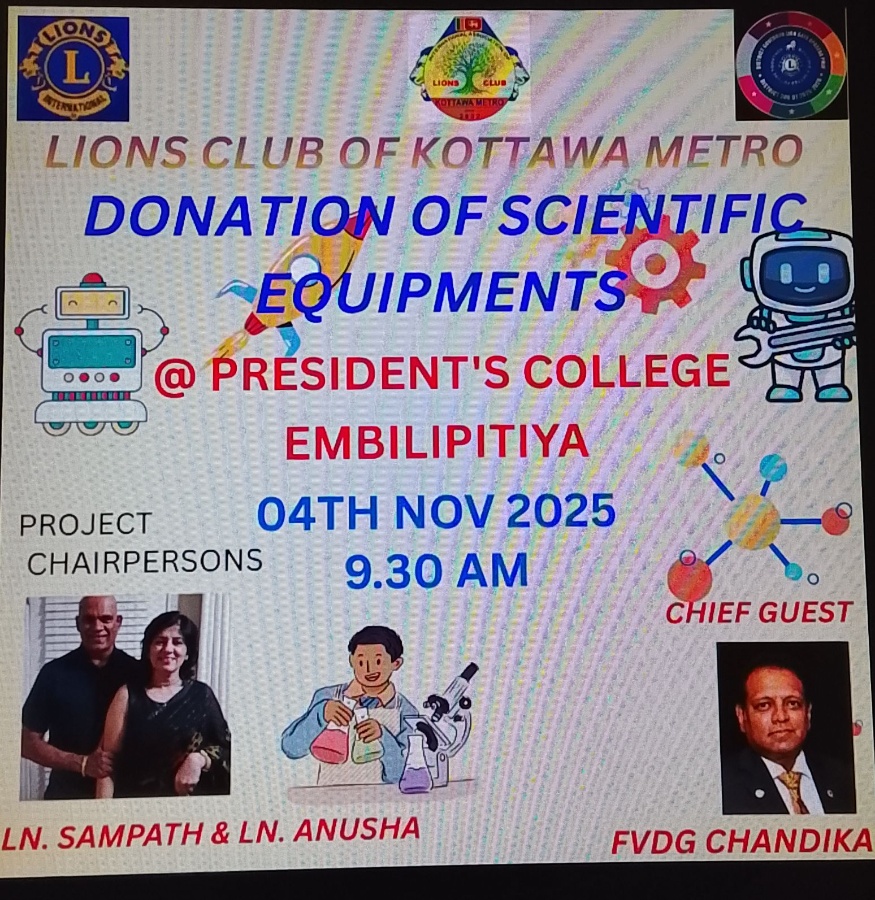 Lions club of kottawa metro donated laboratory equipments worth of rupees 1.2million in the presence of FEDG Chandika Dedigama, region chairman Waruna Wijesekara, zone chairperson Madura Pothumulla, o...
