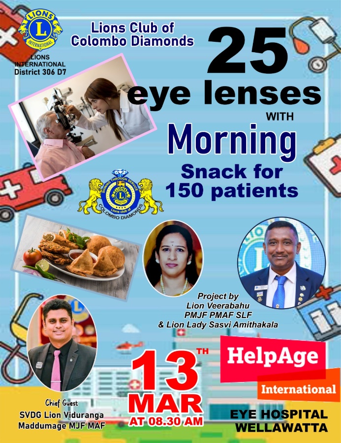Lions Club of Colombo Diamonds Donated Free eye Cataract Surgery to helpage Eye Hospital at Wellawatta,